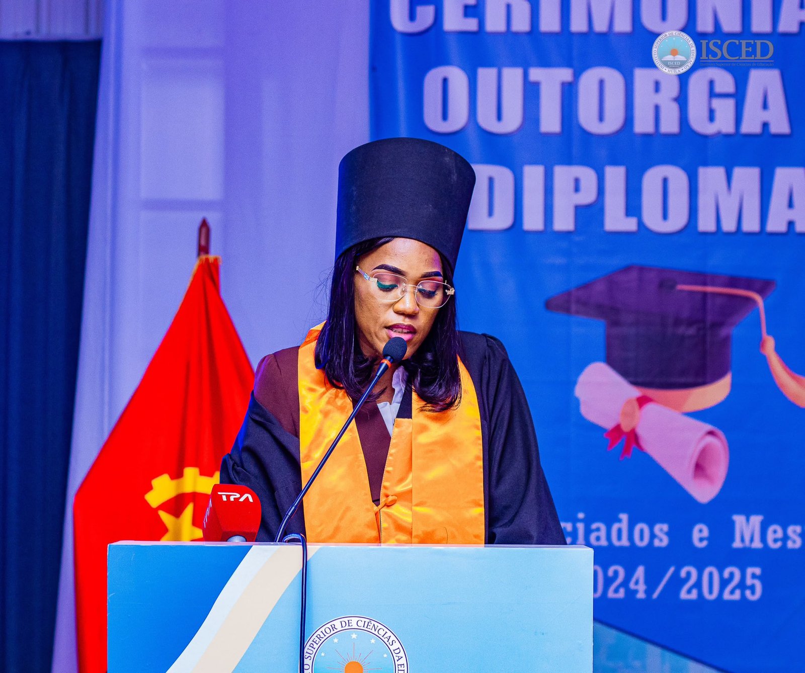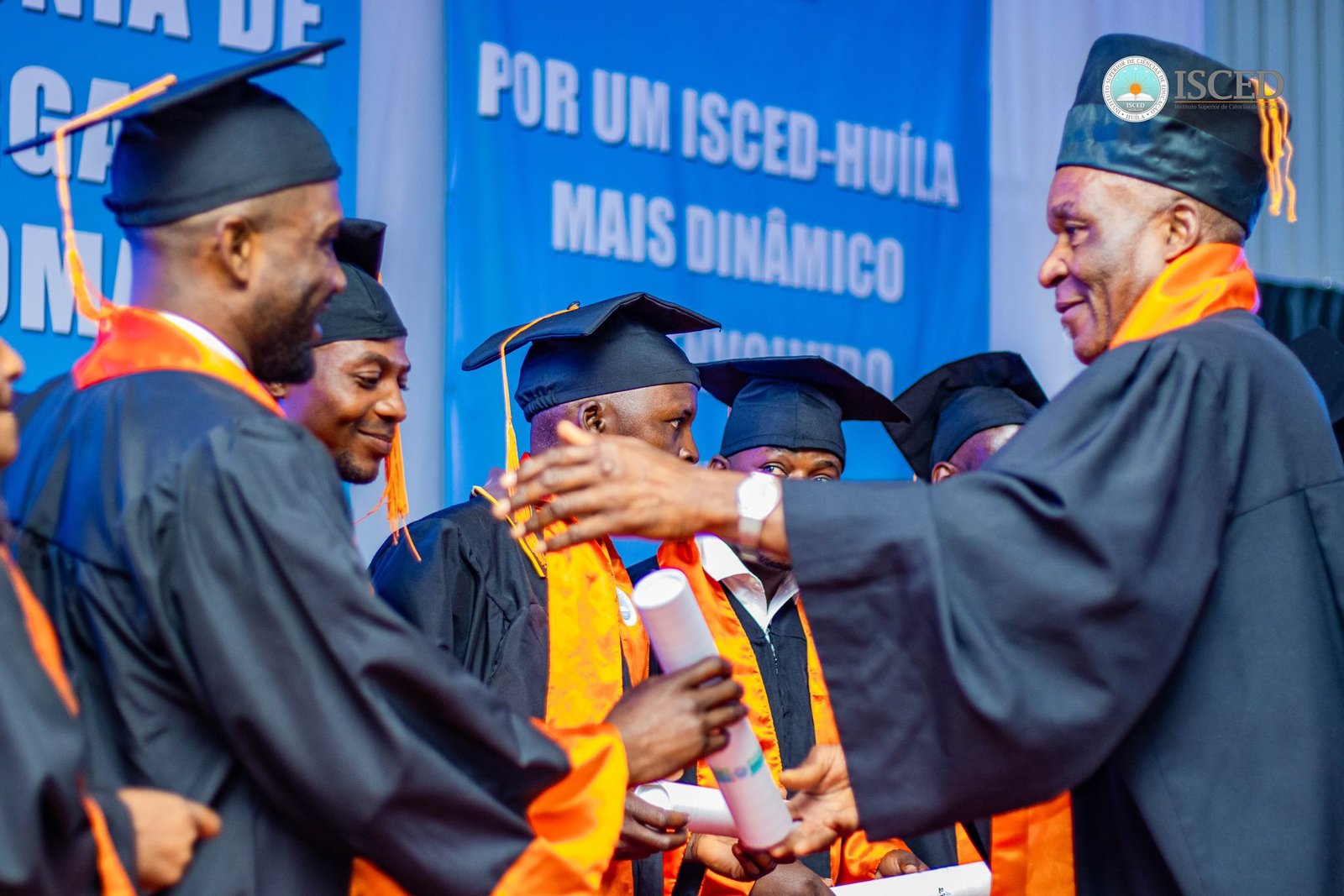 A cerimónia encerrou com a formal outorga dos graus académicos, um momento carregado de simbolismo que marcou o início de uma nova etapa para os Licenciados e Mestres! Sob o lema “Por um ISCED-Huíla mais dinâmico, desenvolvido, humano, ecológico e virado para o futuro”, o evento lançou as sementes de um futuro promissor, consolidando a instituição como viveiro da formação de formadores em Angola. Um bem-haja vibrante ecoou, encerrando com júbilo uma manhã inesquecível de conquistas e esperança colectiva.