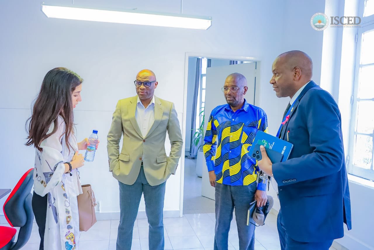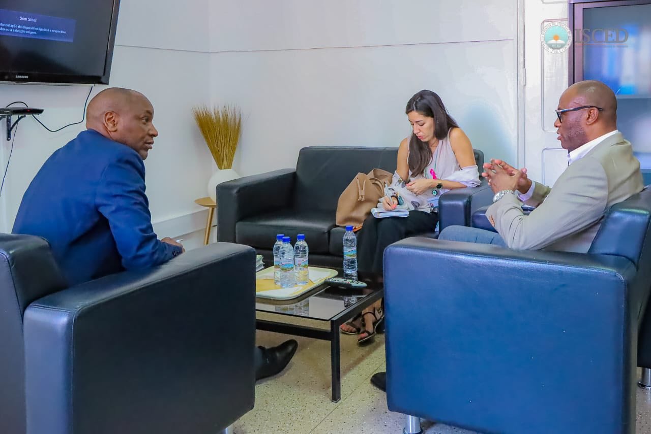 A delegação foi calorosamente acolhida pela Direcção do ISCED-Huíla, liderada pelo Professor Doutor Helder Pedro Alicerces Bahu, num ambiente de amizade institucional e partilha de perspectivas sobre o ensino superior em Angola.